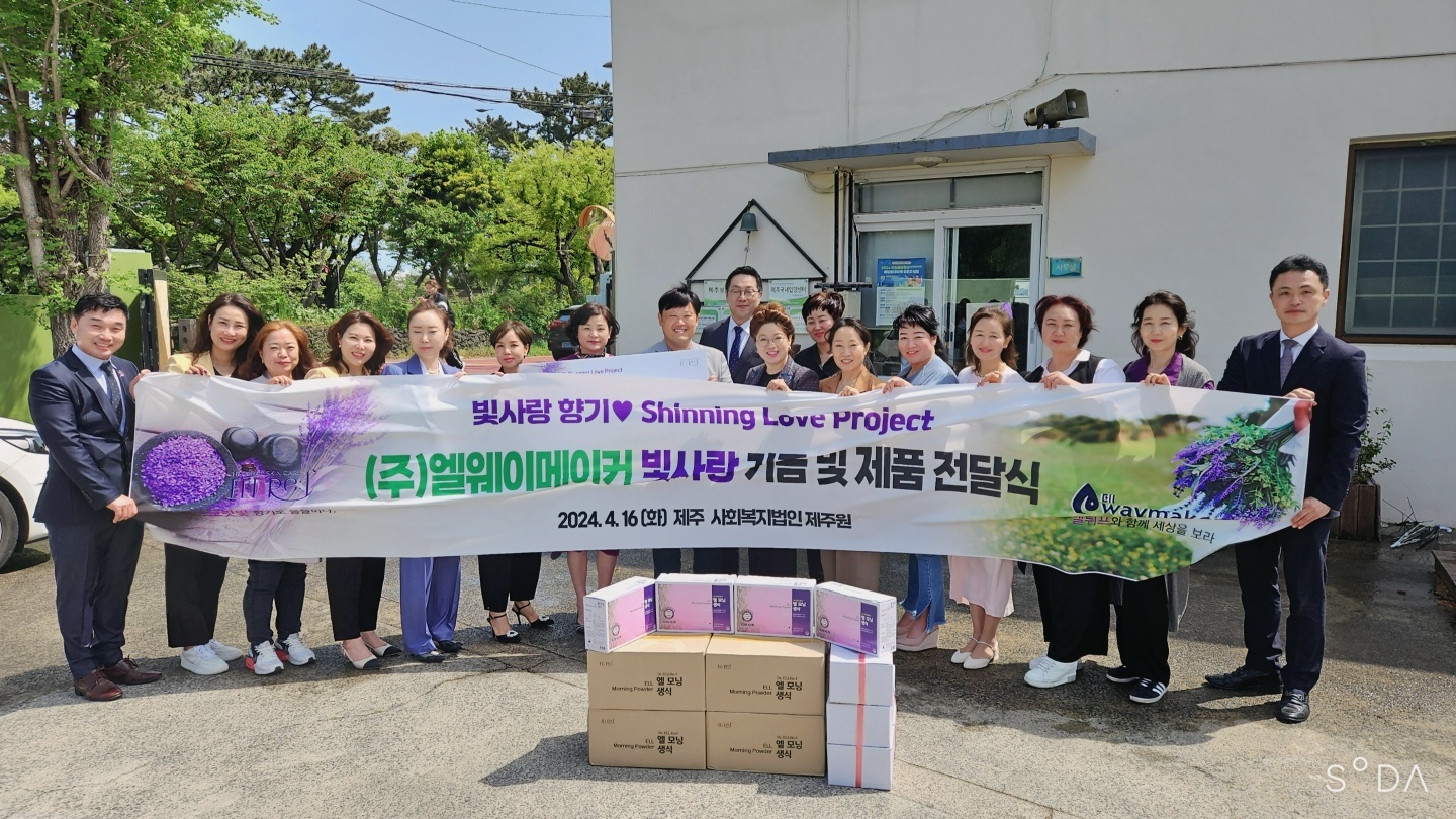 지난 4월에는 임직원과 더불어 빛사랑 프로젝트를 함께 실행하는 회원들이 본사가 있는 제주도 내 제주보육원을 방문해 약 1,000만 원 상당 기금과 제품을 전하기도 했다.